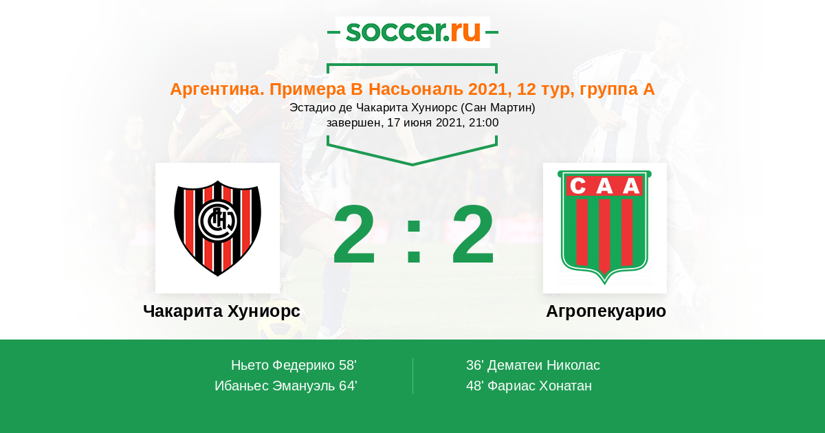 Протокол матча Чакарита Хуниорс против Агропекуарио