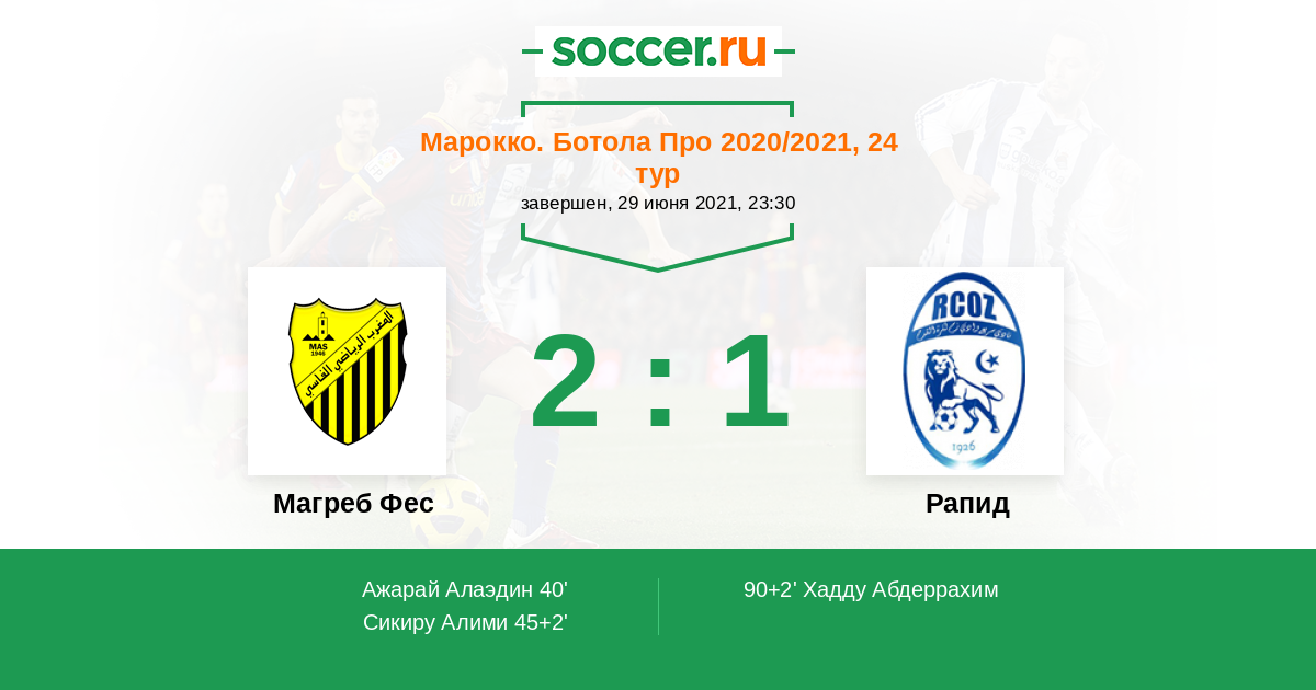 Протокол матча Магреб Фес против Рапид