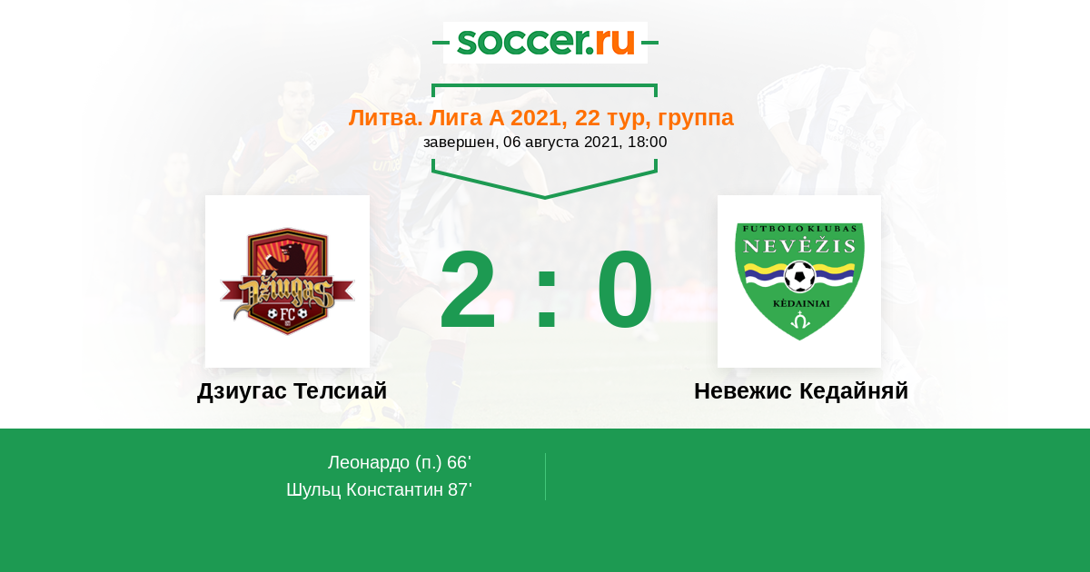 Протокол матча Дзиугас Телсиай против Невежис Кедайняй