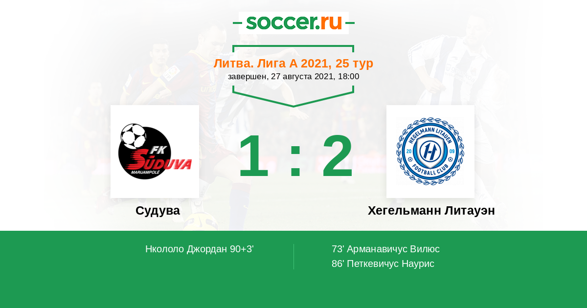 Протокол матча Судува против Хегельманн Литауэн