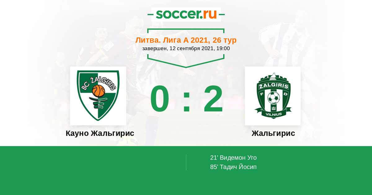 Протокол матча Кауно Жальгирис против Жальгирис