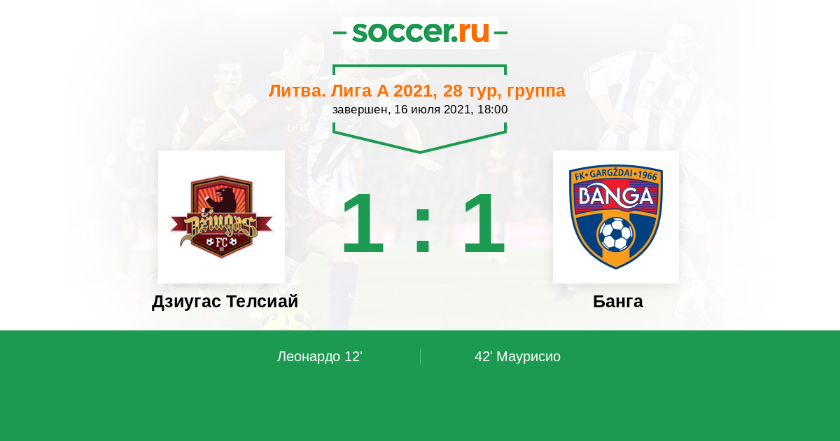 42' (1:1) Маурисио (3) (Урбайтис Каролис (10))