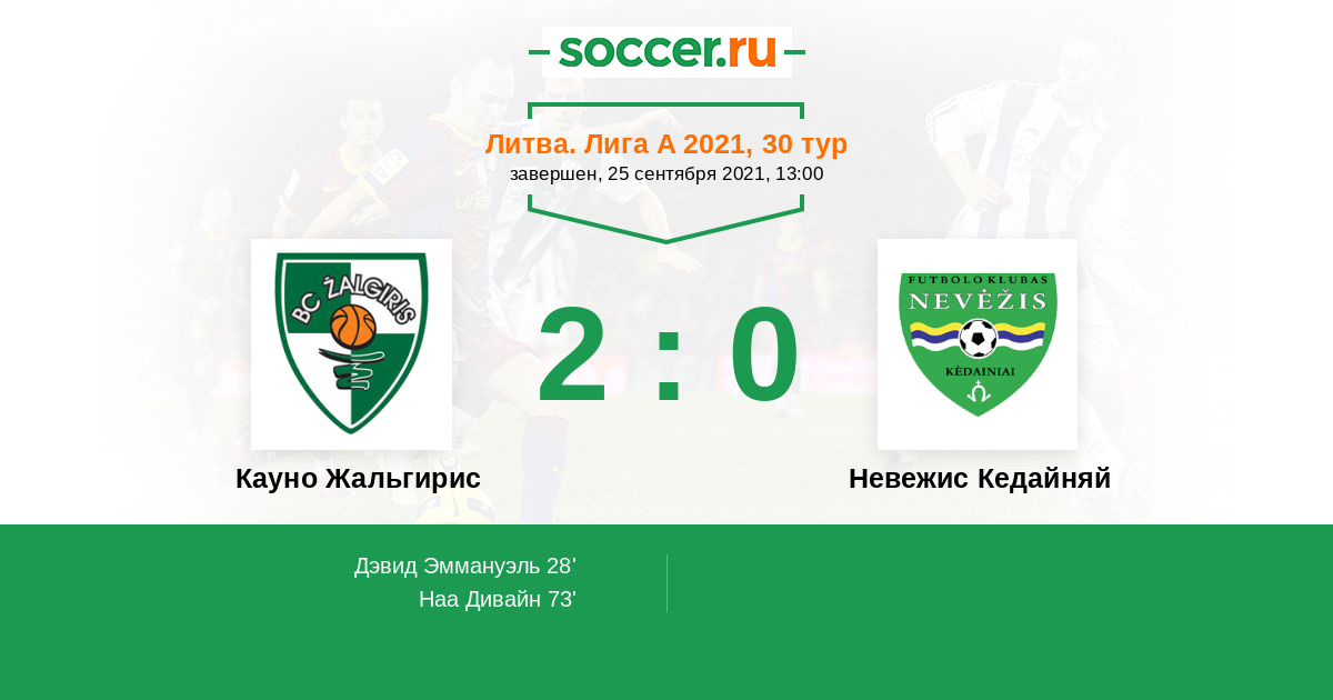 Протокол матча Кауно Жальгирис против Невежис Кедайняй