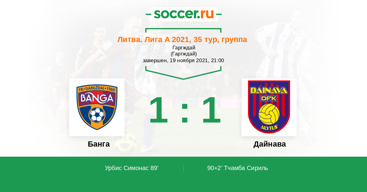 90+2' (1:1) Тчамба Сириль (98) (Матулевичюс Дейвидас (9))