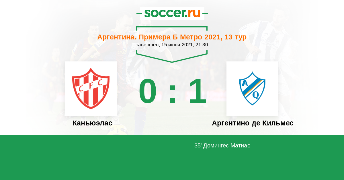 Протокол матча Каньюэлас против Аргентино де Кильмес
