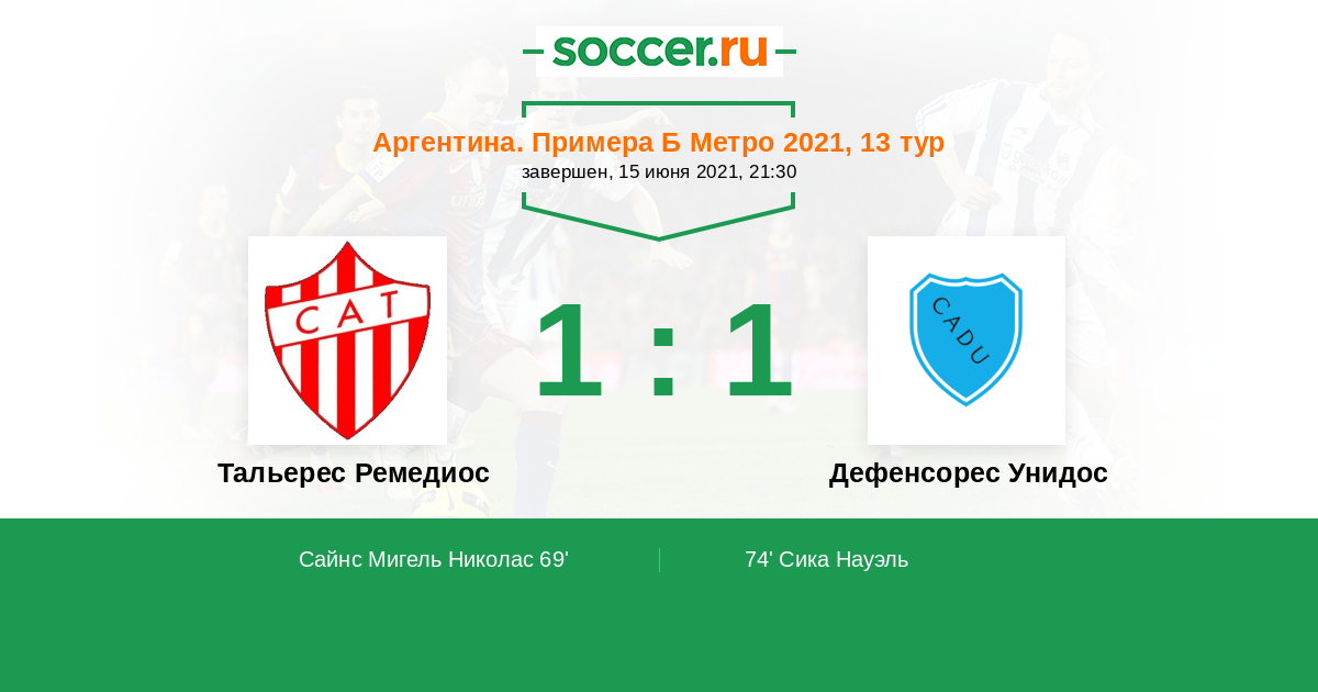 Протокол матча Тальерес Ремедиос против Дефенсорес Унидос