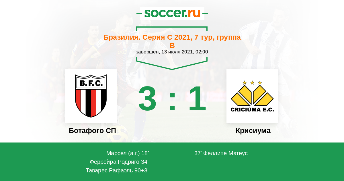 Протокол матча Ботафого СП против Крисиума