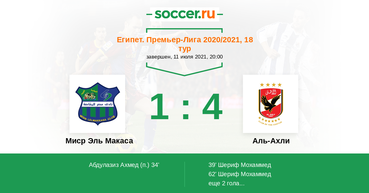 Протокол матча Миср Эль Макаса против Аль-Ахли