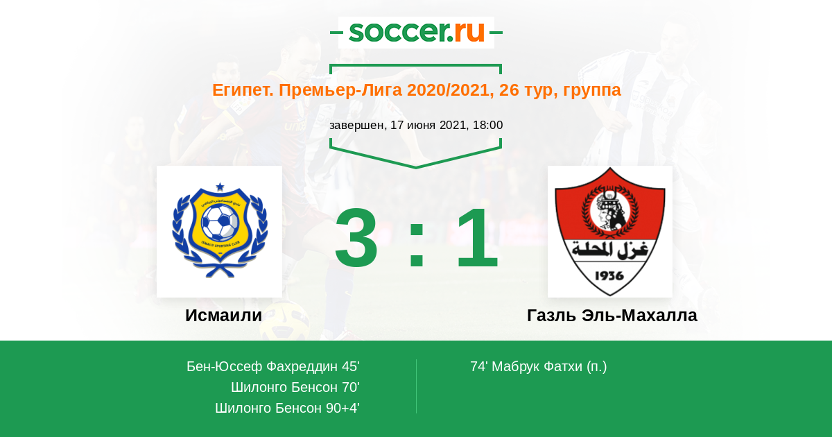 Протокол матча Исмаили против Газль Эль-Махалла