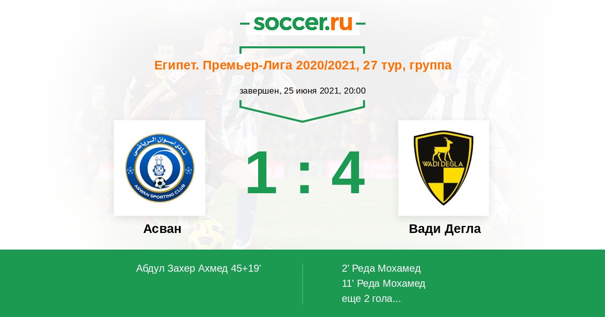 Протокол матча Асван против Вади Дегла