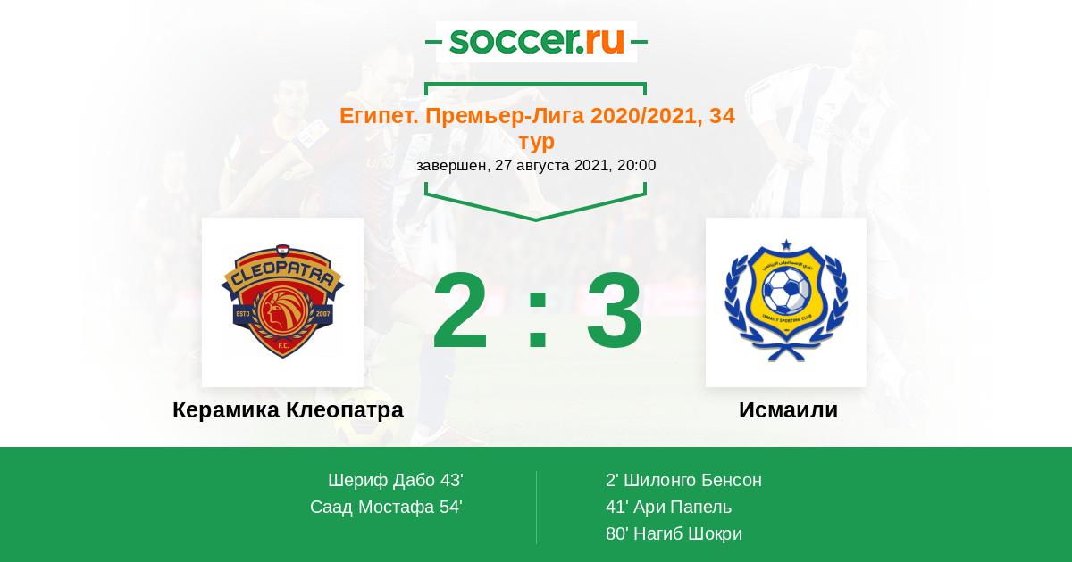 43' (1:2) Шериф Дабо (11) (Мохсен Ахмед (12))