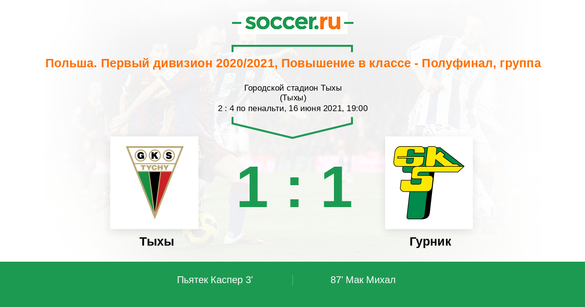 Протокол матча Тыхы против Гурник