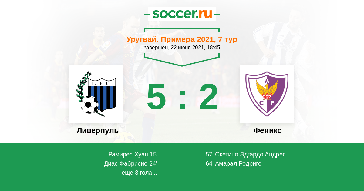 Протокол матча Ливерпуль против Феникс