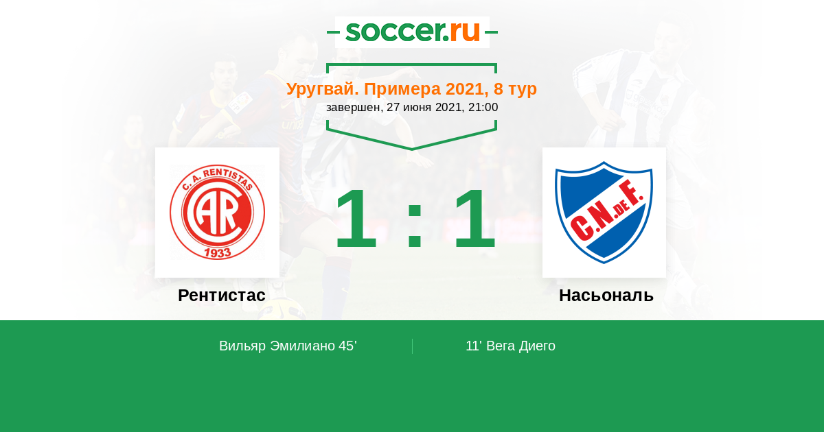Протокол матча Рентистас против Насьональ