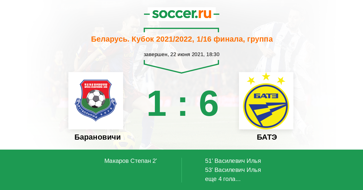 Протокол матча Барановичи против БАТЭ