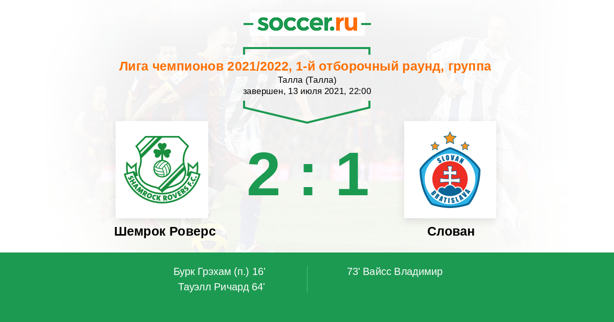Протокол матча Шемрок Роверс против Слован
