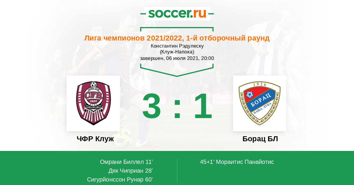 Протокол матча ЧФР Клуж против Борац БЛ