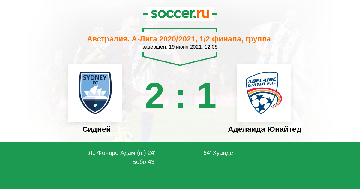 Протокол матча Сидней против Аделаида Юнайтед