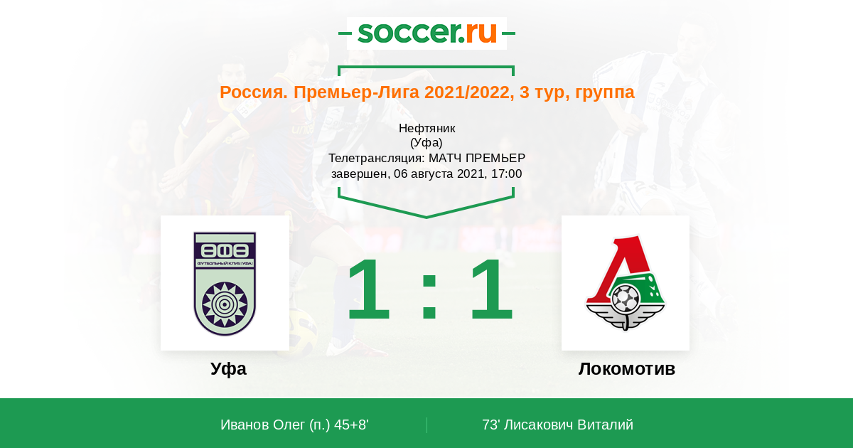 Уфа очень прилично смотрелась. Как-будто и нет никаких проблем с финансами. Состав вполне боевой. Могли сегодня победить и в первом, и во втором тайме. Не повезло. А Локо повезло.