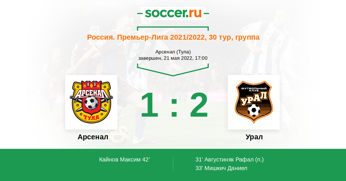 Тульский “Арсенал” уже вылетел в ФНЛ при любом исходе заключительного матча РПЛ в текущем сезоне. А вот “Урал” по-прежнему может упасть ниже – в зону стыковых матчей. Екатеринбургскому клубу нужна только победа на выезде. Думаю будет веселая игра