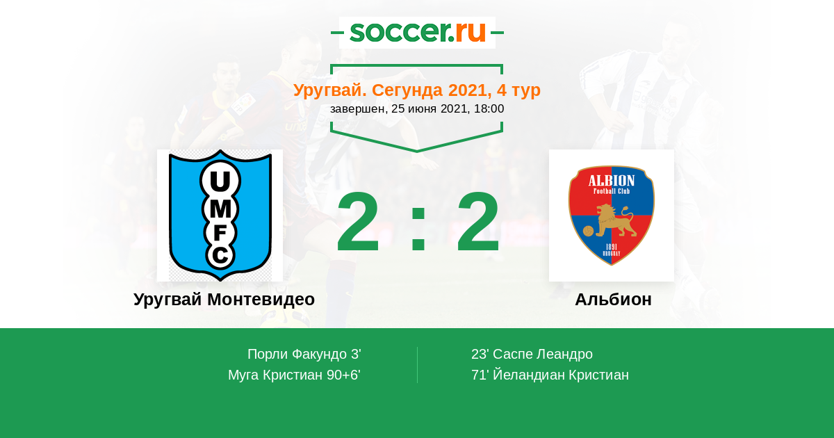 Протокол матча Уругвай Монтевидео против Альбион
