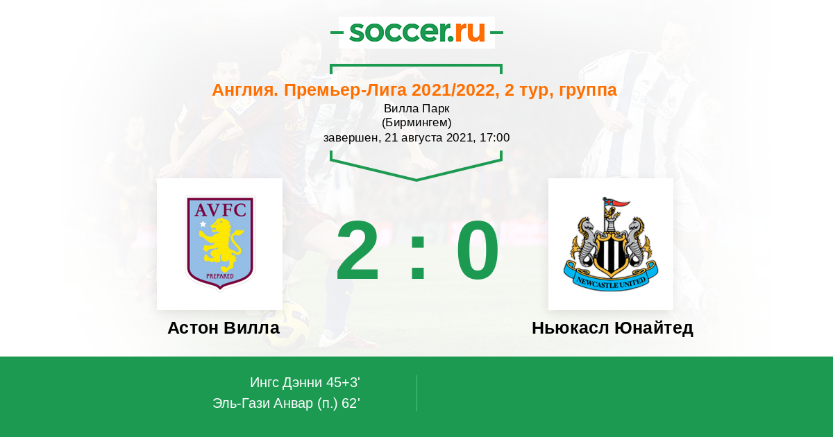 Протокол матча Астон Вилла против Ньюкасл Юнайтед