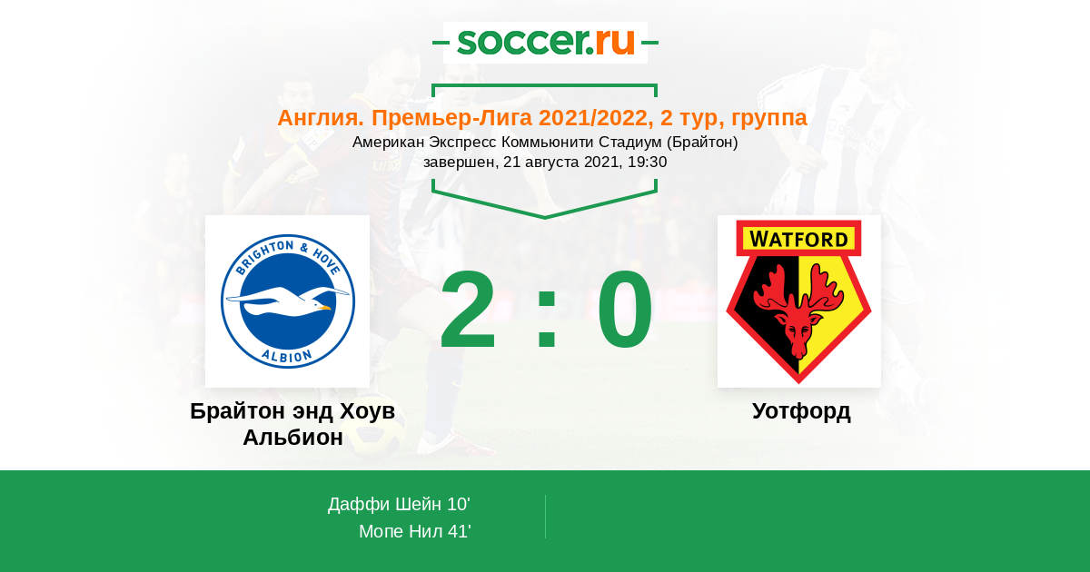 Протокол матча Брайтон энд Хоув Альбион против Уотфорд