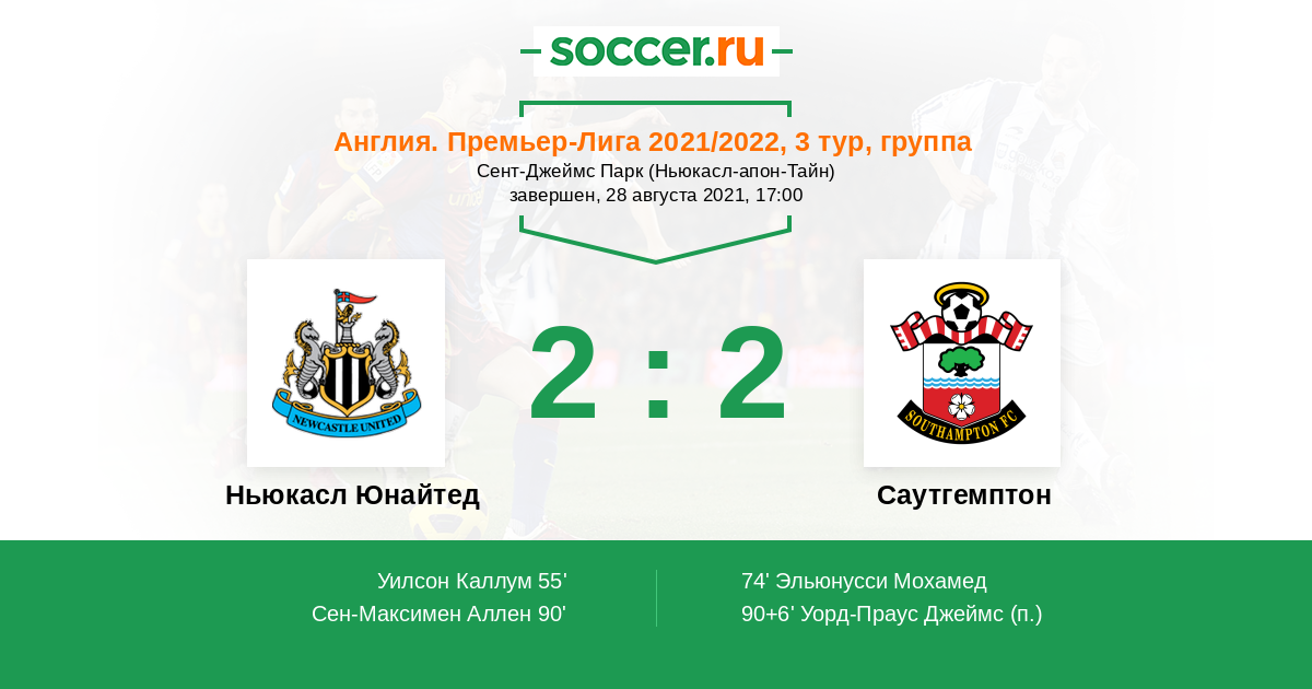 Протокол матча Ньюкасл Юнайтед против Саутгемптон