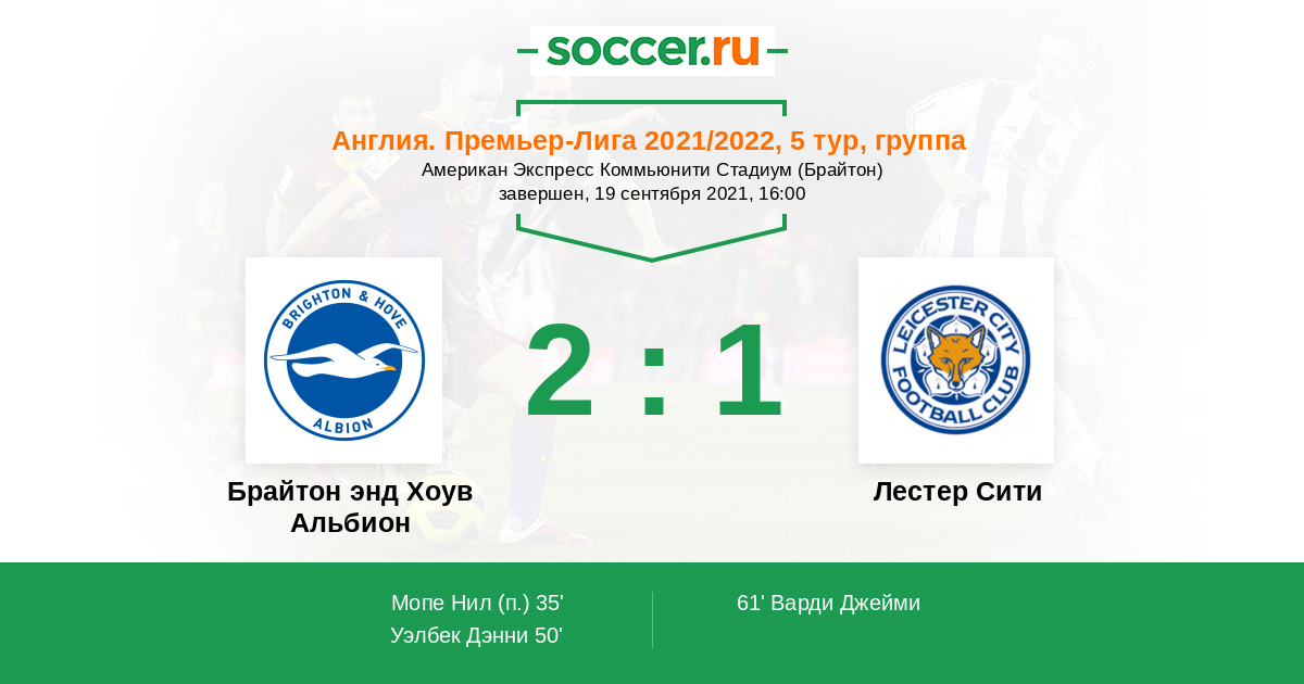 Протокол матча Брайтон энд Хоув Альбион против Лестер Сити
