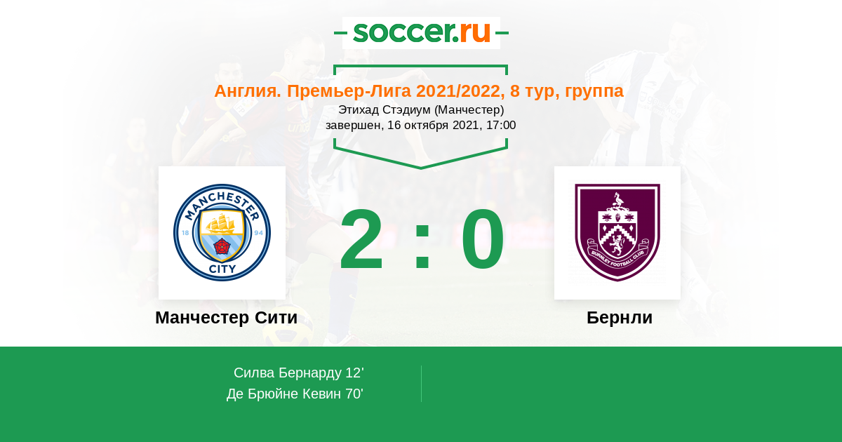 Бернли не может выиграть в этом чемпионате уже семь туров (3 ничьи, 4 поражения). Статистика говорит в пользу Манчестер Сити.
