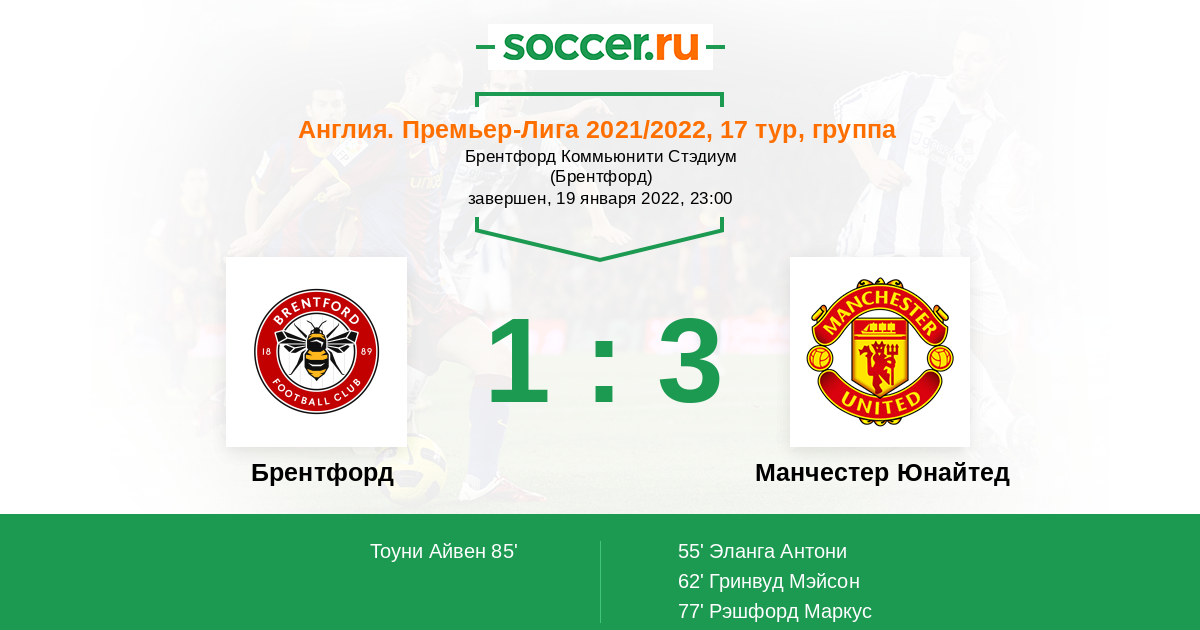 Протокол матча Брентфорд против Манчестер Юнайтед