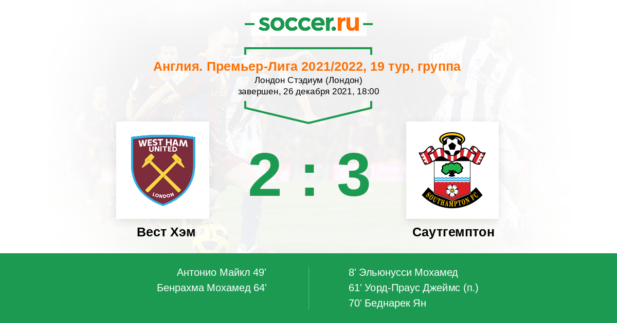 У себя дома "Вест Хэм" не проигрывает в четырех матчах АПЛ подряд. Три из них хозяева выиграли, один раз сыграли вничью. "Саутгемптон" выиграл только один выездной матч чемпионата в этом сезоне. В пяти команда проиграла, а еще в трех сыграла вничью.