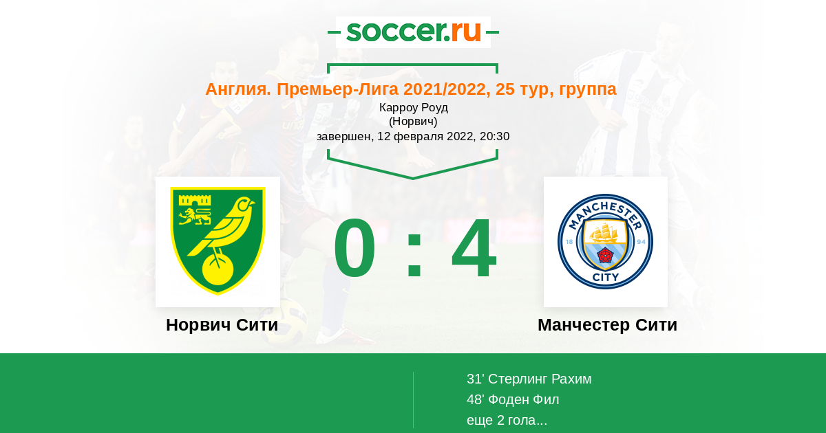 Протокол матча Норвич Сити против Манчестер Сити