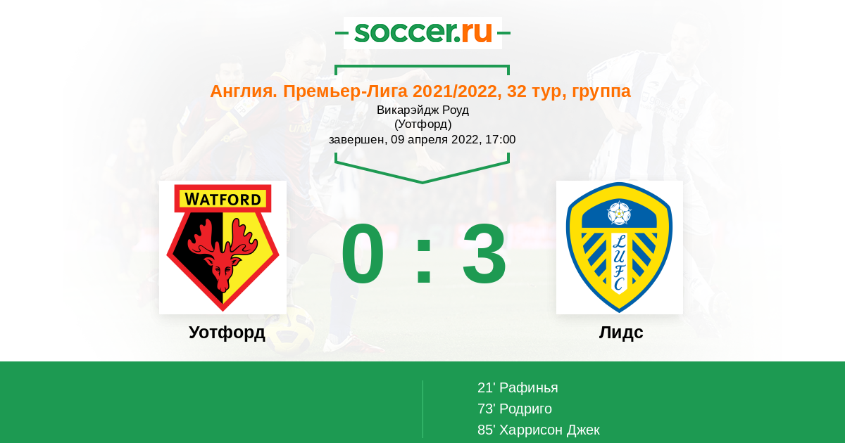 Лидс сменил тренера, однако надёжности в обороне до сих пор нет. Зато в атаке начали появляться новые элементы. Марш раскрепостил игроков. Смена наставника Уотфорда также ярко отображается на игре команды. Уотфорд забивает достаточно много.