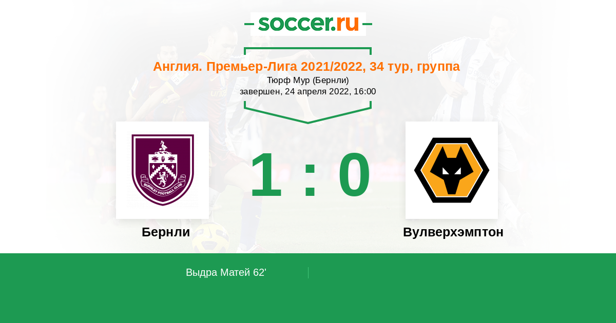 Протокол матча Бернли против Вулверхэмптон
