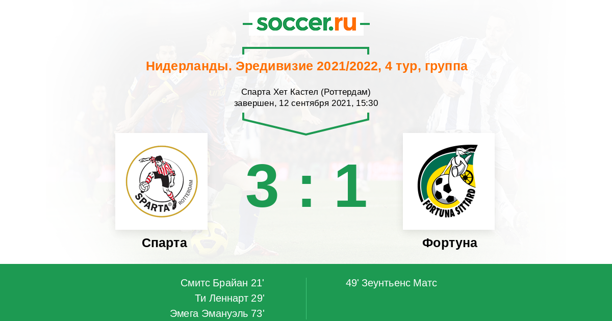 73' (3:1) Эмега Эмануэль (19) (Смитс Брайан (10))