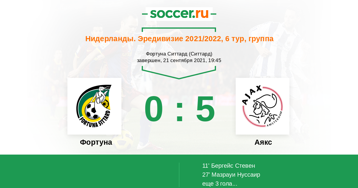 Протокол матча Фортуна против Аякс