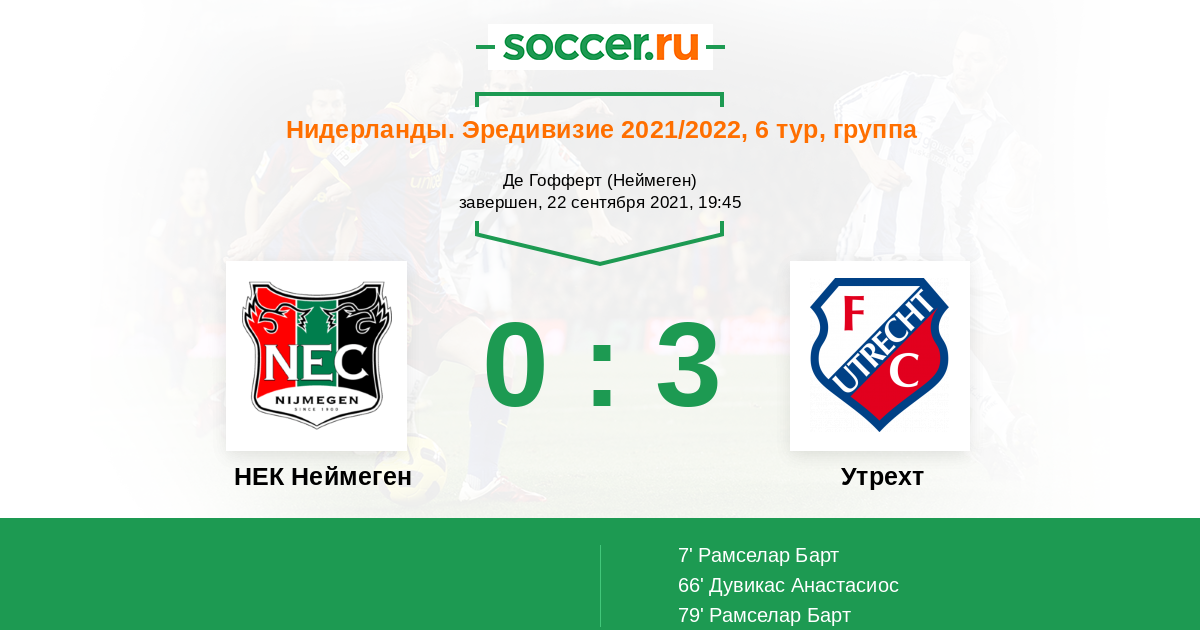 Протокол матча НЕК Неймеген против Утрехт