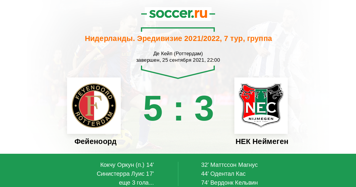 Протокол матча Фейеноорд против НЕК Неймеген