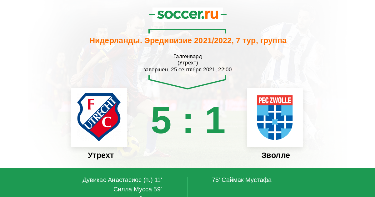 Протокол матча Утрехт против Зволле
