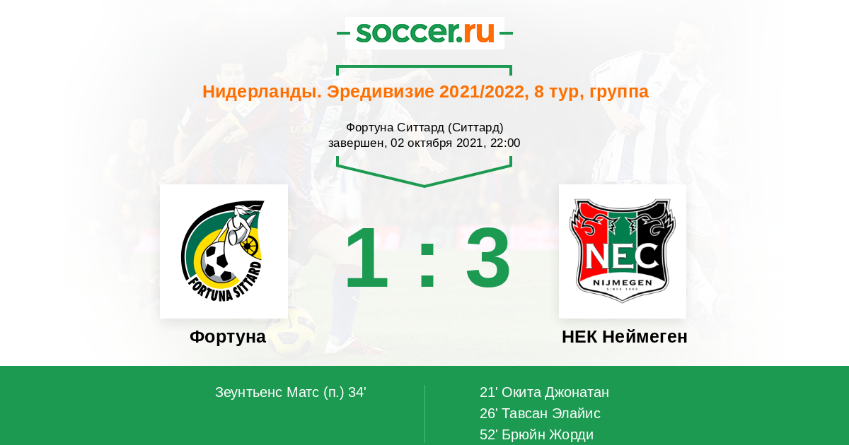 Протокол матча Фортуна против НЕК Неймеген