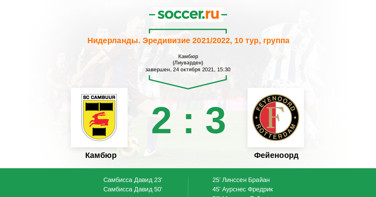 Протокол матча Камбюр против Фейеноорд