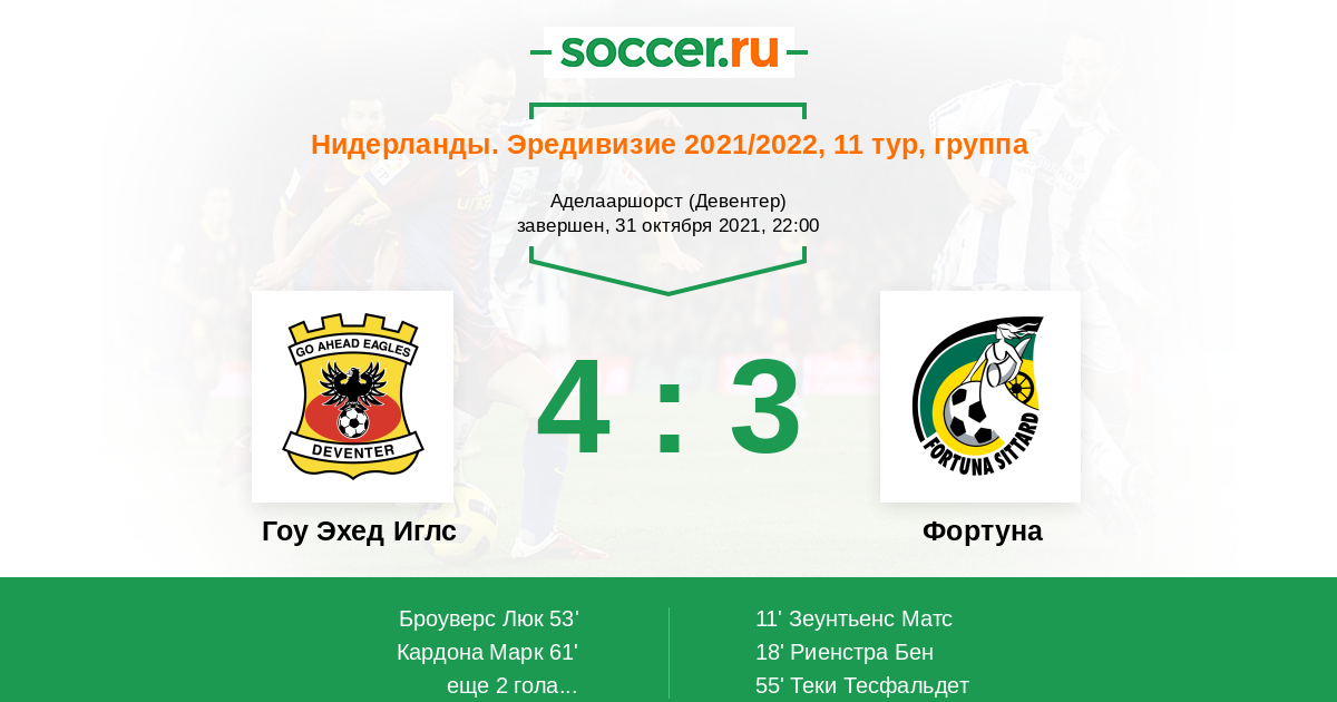 Протокол матча Гоу Эхед Иглс против Фортуна