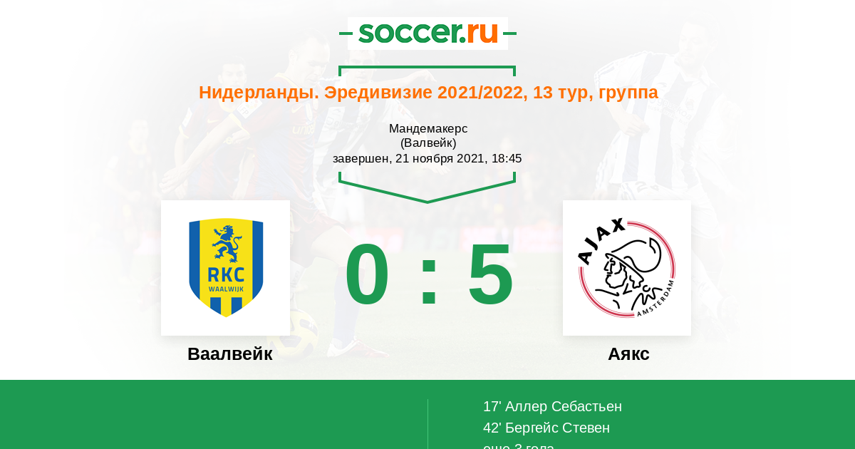 Протокол матча Ваалвейк против Аякс