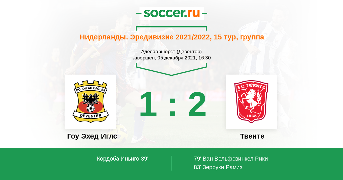 Протокол матча Гоу Эхед Иглс против Твенте