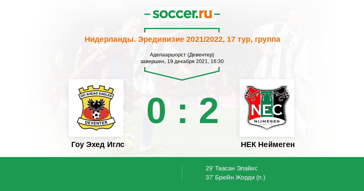 Протокол матча Гоу Эхед Иглс против НЕК Неймеген
