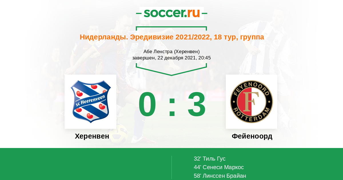 Протокол матча Херенвен против Фейеноорд