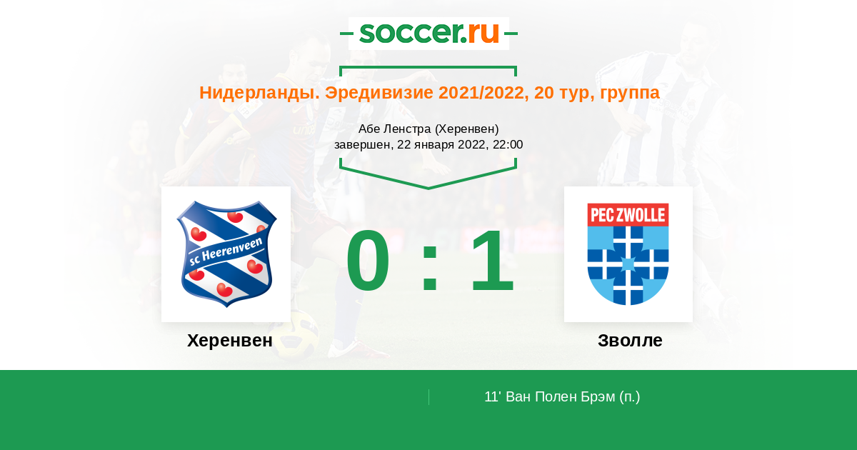 Протокол матча Херенвен против Зволле