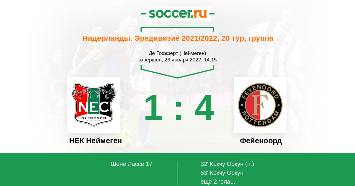 Протокол матча НЕК Неймеген против Фейеноорд