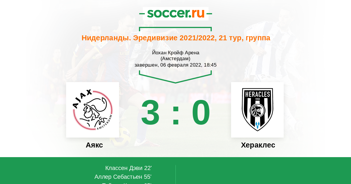 У Аякса феноменальная разница голов, в среднем он забивает более 3 голов, при том, что Хераклес в гостях набрал всего 2 очка. Тут с победителем всё ясно, поставлю на повкуснее...
